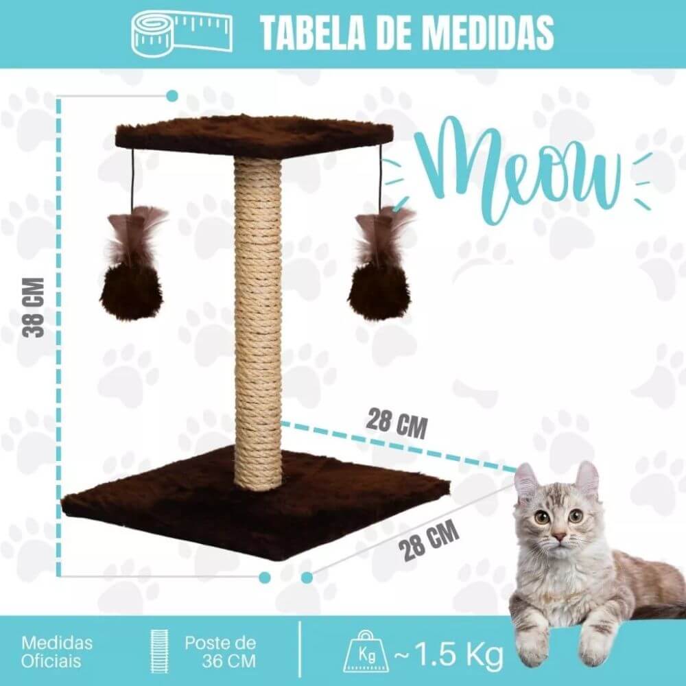 Com sua coluna central em sisal natural, o seu gato terá o local perfeito para arranhar e manter as unhas saudáveis, sem precisar descontar nos seus móveis. A estrutura firme em MDF garante estabilidade, enquanto a base e o topo revestidos em tecido macio tornam o arranhador aconchegante e seguro.